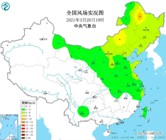 3月28日风场实况图 中央气象台供图