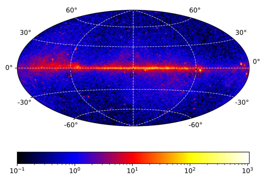 图为“悟空”号伽马光子科学数据全天计数图。(中科院紫金山天文台供图)
