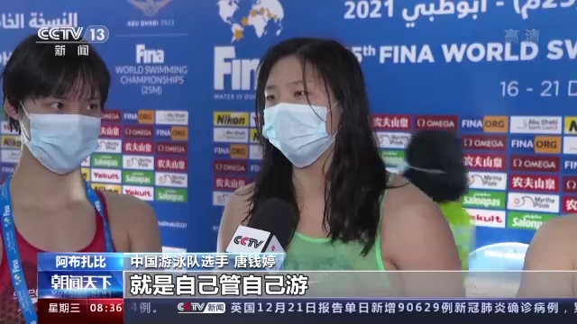 中国游泳队选手 唐钱婷:我也没有太注意对手怎么样,就是自己管自己游,然后也没有想什么结果,就是做好过程。