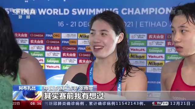 中国游泳队选手 张雨霏:我们游得都挺好的,其实赛前我有想过我们能拿前三。