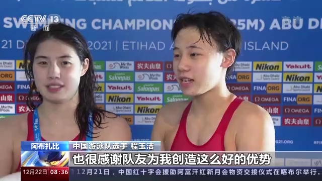 中国游泳队选手 程玉洁:我感觉也是做好自己了,没有管对手怎么样。也很感谢队友为我创造这么好的优势,我也得努力,不能被追上来。