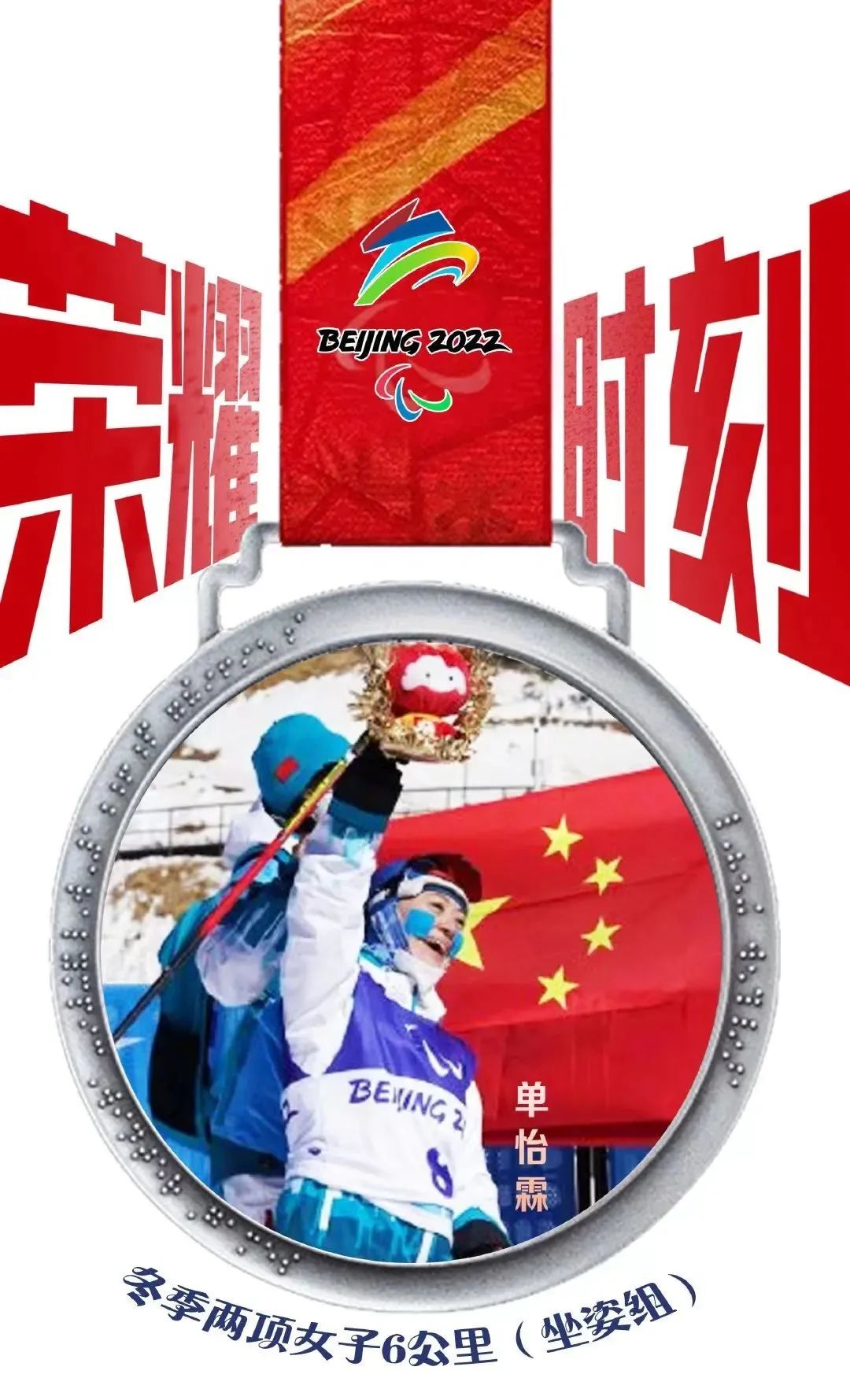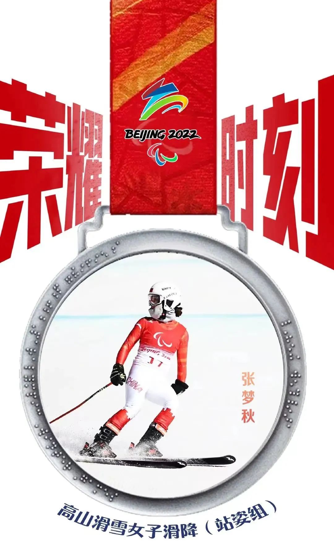 高山滑雪女子滑降(视力障碍组)比赛中,中国选手朱大庆夺得银牌。这是中国代表团在北京冬残奥会上获得的首枚奖牌。