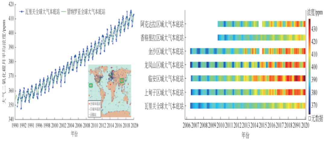 2021年12月,中国气象局发布了国内第一份国家温室气体观测网名录。这标志着经过近40年建设,国内首个温室气体观测网基本建成。温室气体观测网的建成将提升中国气候变化监测评估能力,持续为我国碳达峰、碳中和行动提供科学数据支撑。这次发布的温室气体观测网名录包含60个覆盖全国主要气候关键区并以高精度观测为主的站点,由国家大气本底站、国家气候观象台和国家及省级应用气象(温室气体)观测站等组成。其观测要素涵盖《京都议定书》中规定的CO₂、CH₄、N₂O、氢氟碳化物、全氟化碳、六氟化硫和三氟化氮等7类温室气体。