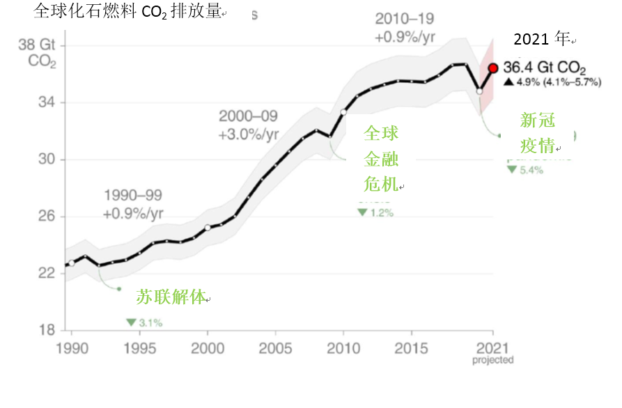 10.2021年全球二氧化碳排放大幅反弹,化石燃料CO₂排放量几乎已恢复到疫情爆发前水平