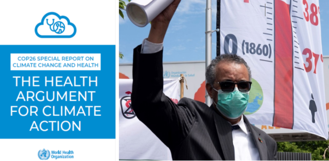 2021年10月,世界卫生组织(WHO)发布一份气候变化与健康特别报告,阐述了全球卫生界对气候行动的立场,即越来越多的研究显示,气候与健康之间有着很多不可分割的联系。报告就全球采取行动应对气候变化、最大限度地改善人类健康向各国政府提出建议:各国政府将健康和社会正义置于联合国气候谈判的核心;优先考虑采取具有最大健康、社会和经济效益的应对气候变化的措施;引导向可再生能源过渡,减少空气污染,特别是燃煤造成的空气污染;促进可持续、有益健康的城市设计和交通系统,重视步行、骑车和公共交通等。报告强调前所未有的极端天气事件和其他气候变化事件正对人类生命和健康造成越来越大的损害,各国必须大力作出应对气候变化的承诺,在新冠疫情后实现有益健康的绿色复苏。