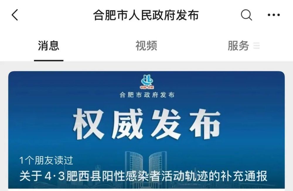 4月6日深夜,安徽肥西县新冠肺炎疫情防控指挥部发布《关于4·3肥西县阳性感染者活动轨迹的补充通报》。