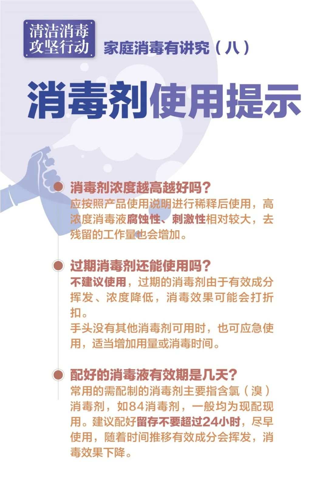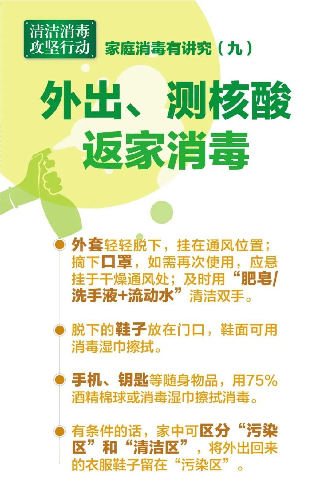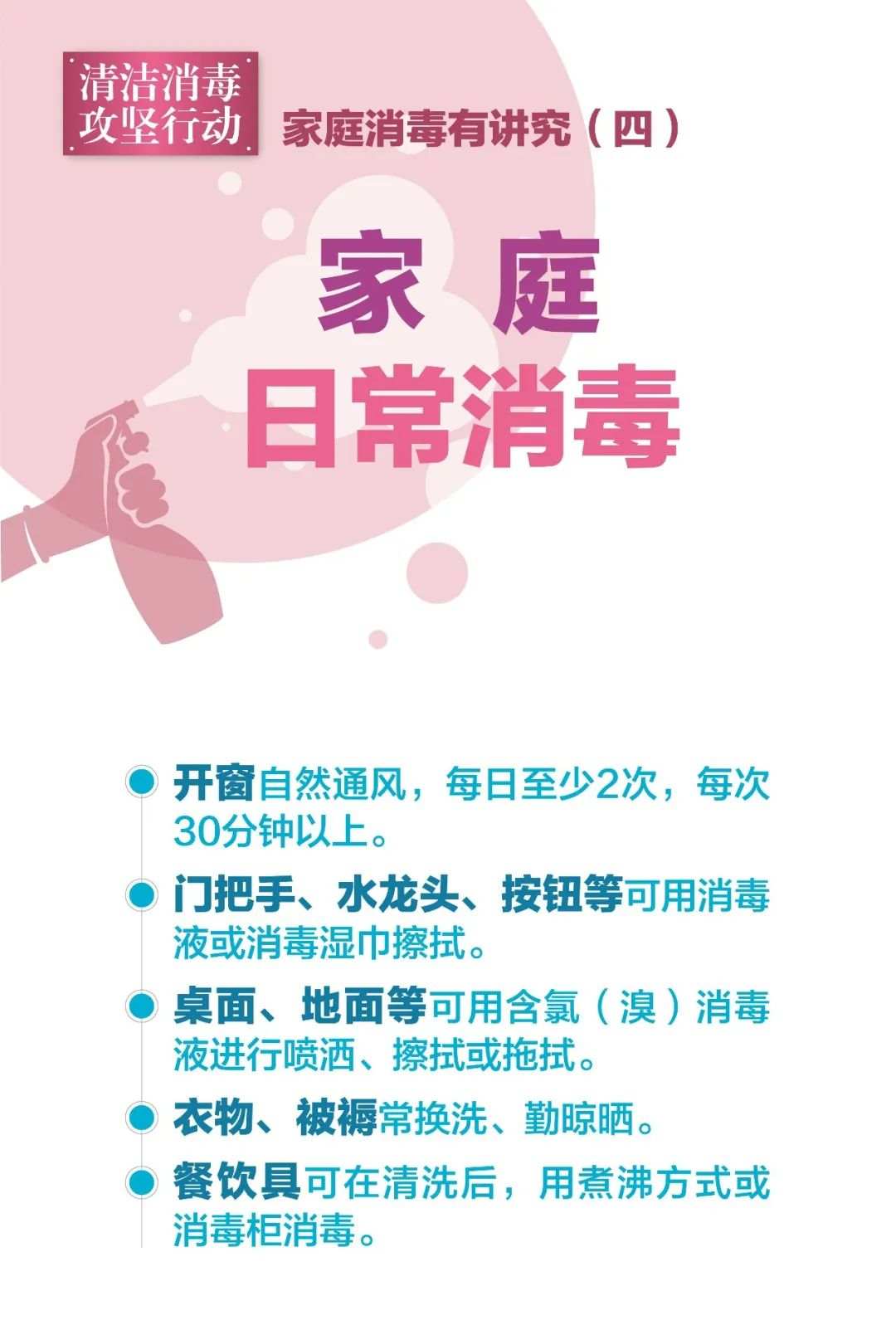 近期,上海市环境整治消杀工作专班、市爱卫办会同市疾控中心、市健康促进中心开发了一整套共十张家庭清洁消毒的宣传海报,涵盖消毒原则、消毒要素及消毒方法等一系列要点,从具体消毒剂的使用到各类物品消毒,帮助广大市民主动掌握规范、专业的家庭清洁、消毒方法。详见↓