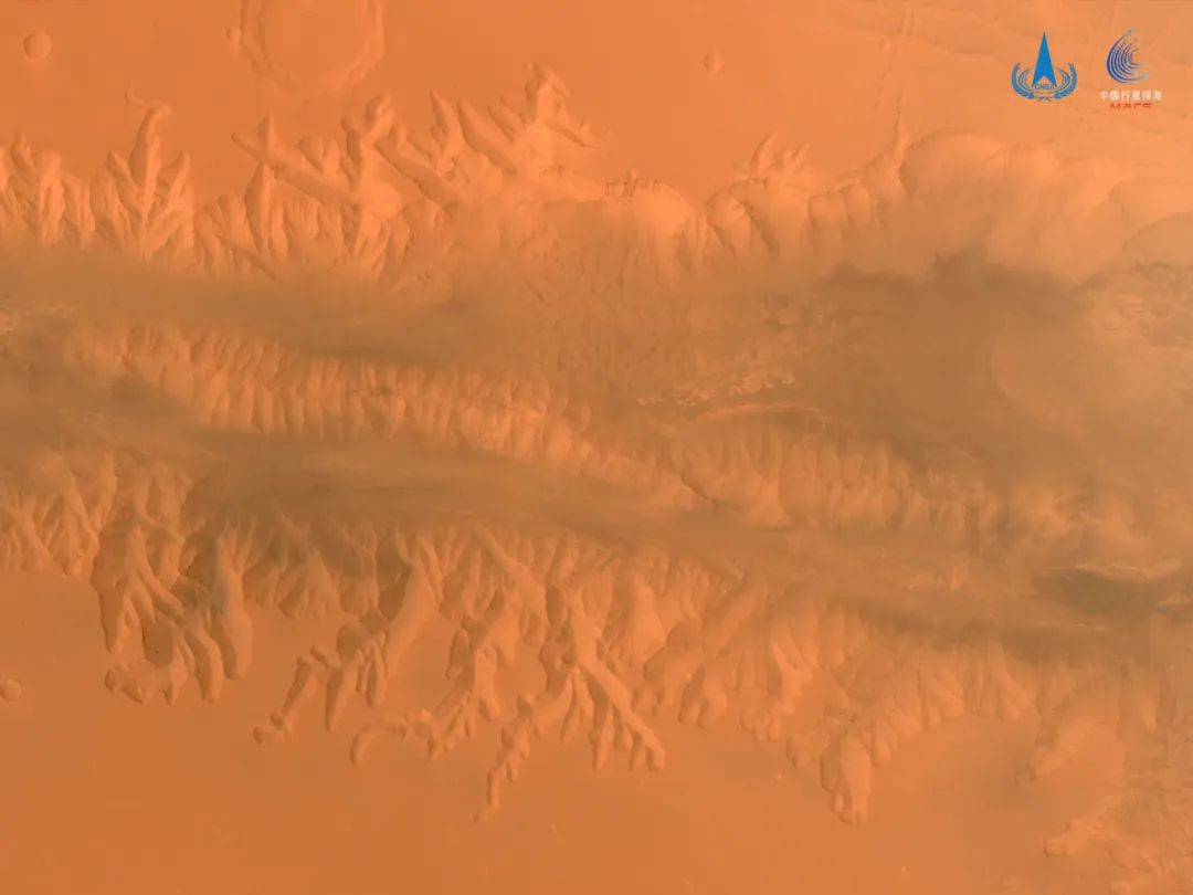 2022年4月1日,中分辨率相机拍摄的火星水手谷局部地貌。(图片来源:国家航天局)