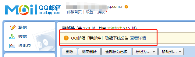 近日,QQ邮箱发布“QQ邮箱群邮件功能下线公告”。