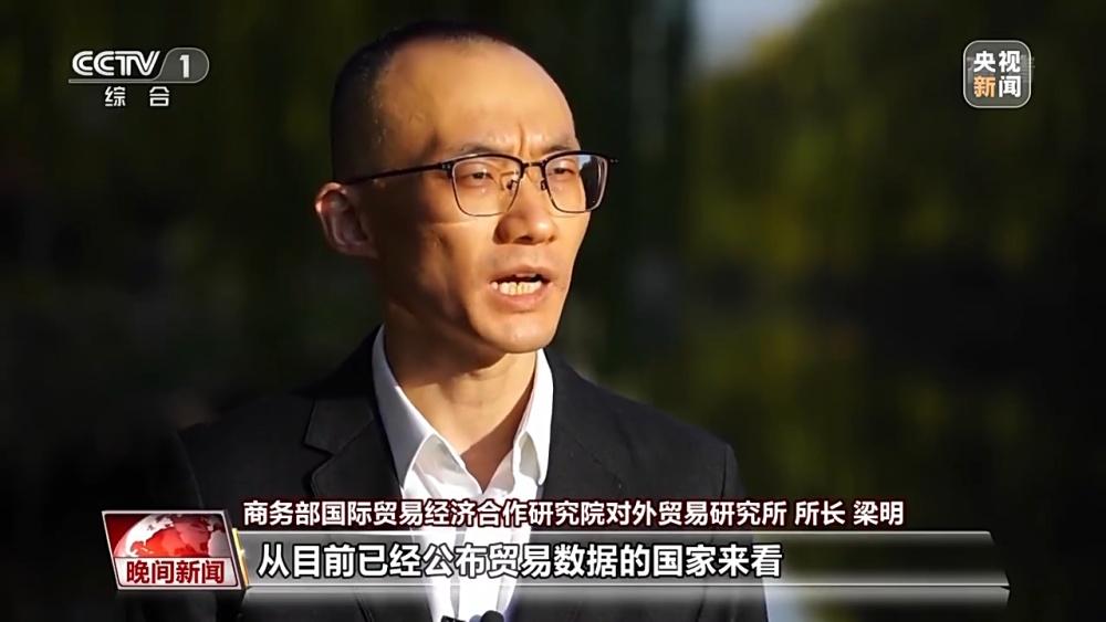 商务部国际贸易经济合作研究院对外贸易研究所所长 梁明:从目前已经公布贸易数据的国家来看,中国出口对世界总出口的贡献度是始终排在第一位的。