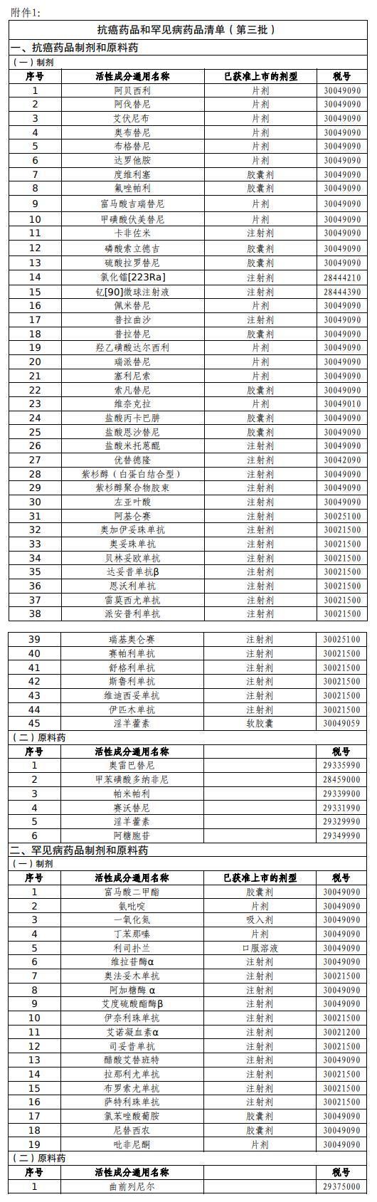 财政部、海关总署、税务总局、国家药监局今天(21日)发布公告,公布第三批适用增值税政策的抗癌药品和罕见病药品清单。
