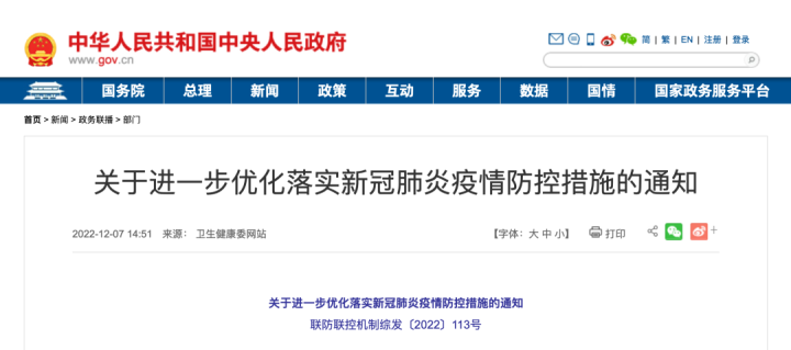 12月7日,国务院联防联控机制发布《关于进一步优化落实新冠肺炎疫情防控措施的通知》,明确要求不再对跨地区流动人员查验核酸检测阴性证明和健康码,不再开展落地检。