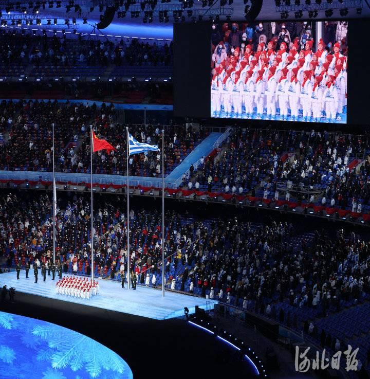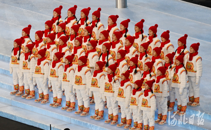 2022年2月4日,北京冬奥会开幕式上,由阜平县城南庄镇夏庄学区中心校的孩子们组建的马兰花儿童声合唱团唱响奥林匹克会歌。河北日报记者霍艳恩摄