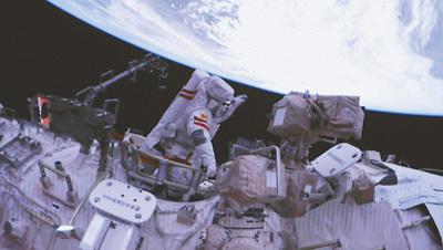 张陆结束出舱任务正在返回。图片均为新华社记者刘芳摄