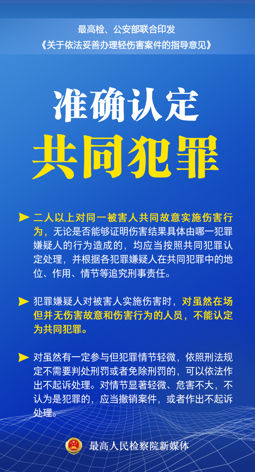 近日,最高检联合公安部印发《关于依法妥善办理轻伤害案件的指导意见》,对司法实践中的突出问题明确了有关意见。如何准确区分正当防卫与互殴型故意伤害?如何准确认定共同犯罪?戳图get!