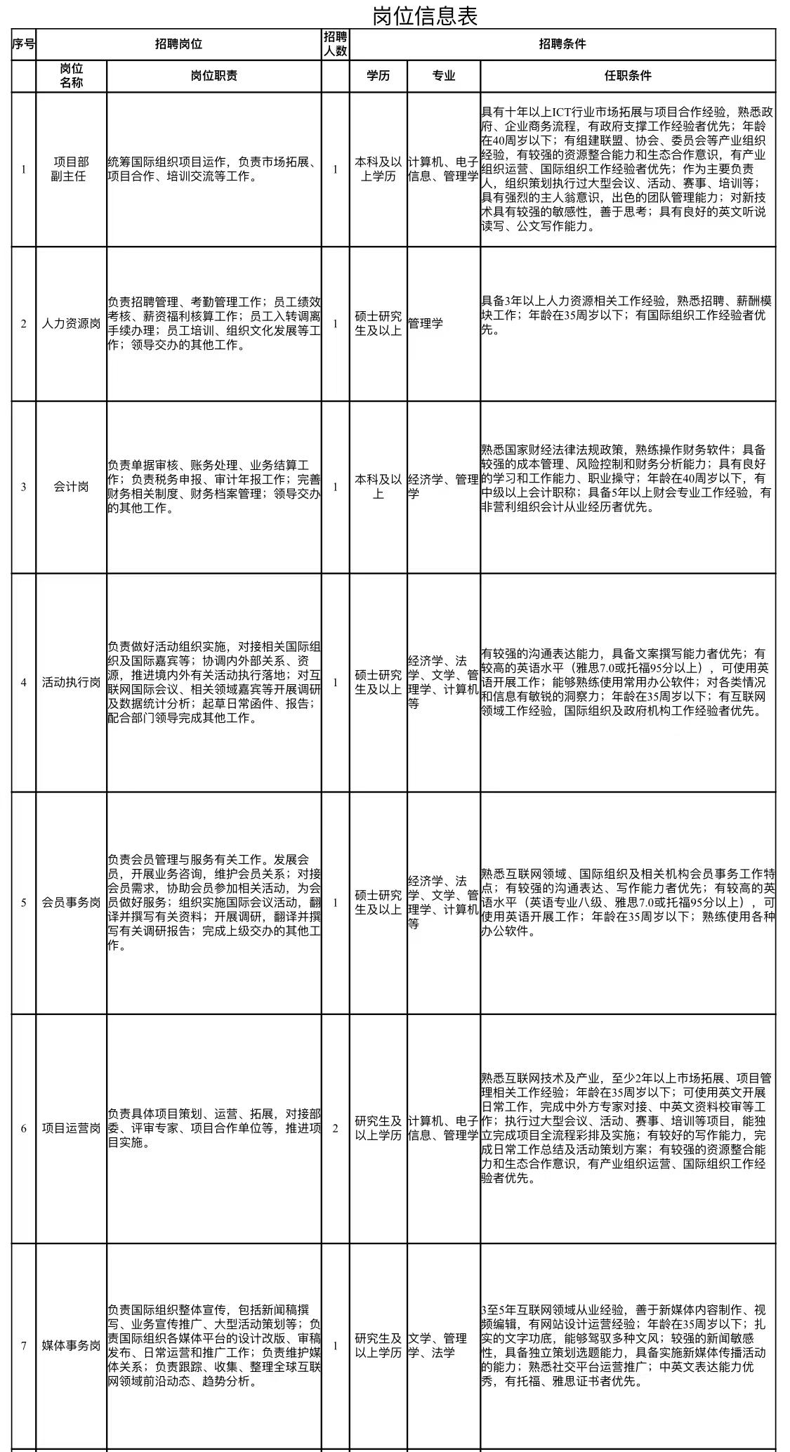 岗位职责及任职条件详见《岗位信息表》(见下图)。