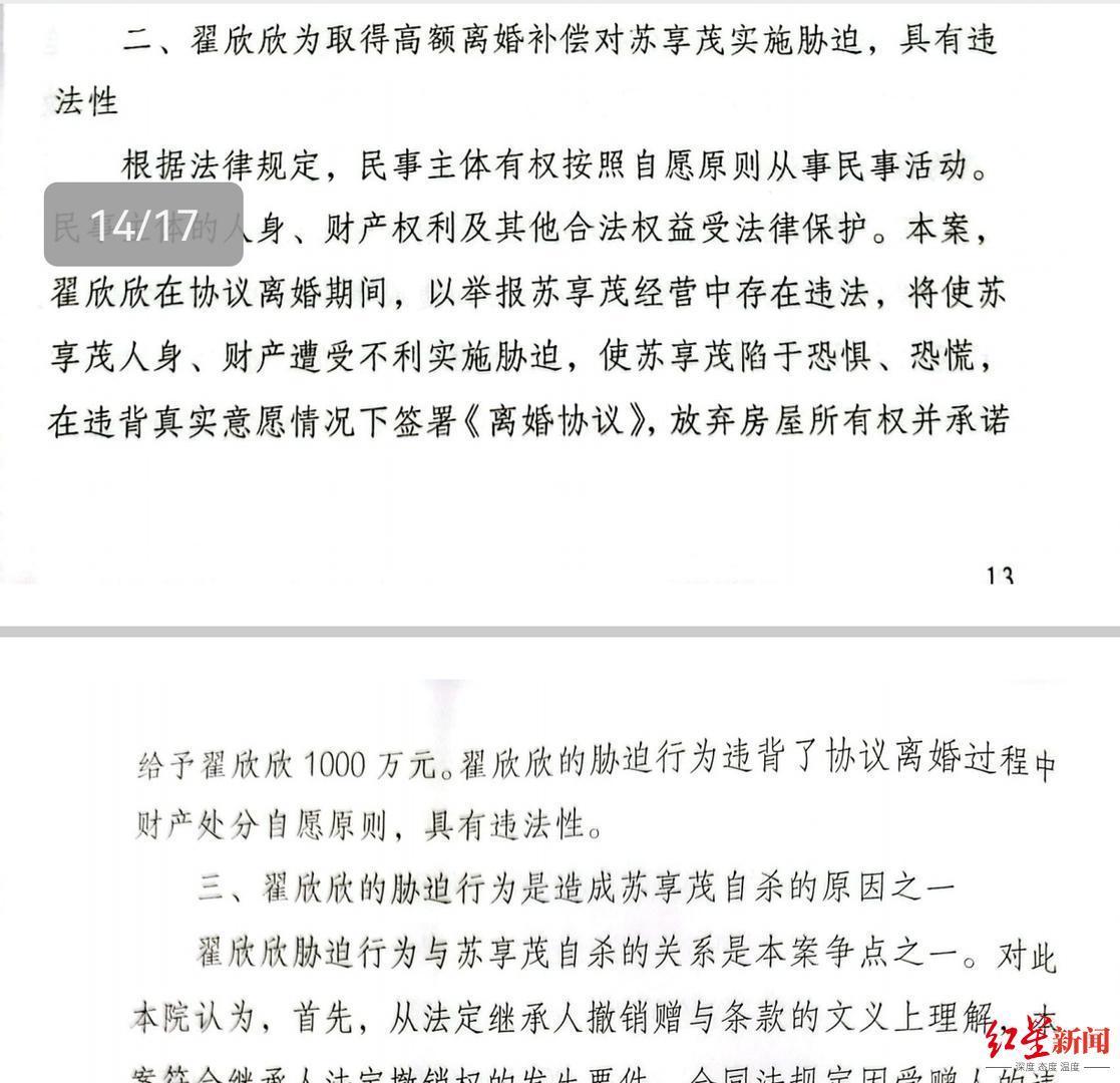 2018年苏享茂家属将翟欣欣告上法庭,要求法院撤销苏享茂价值近千万的赠予,并要求对方返还近百万现金。