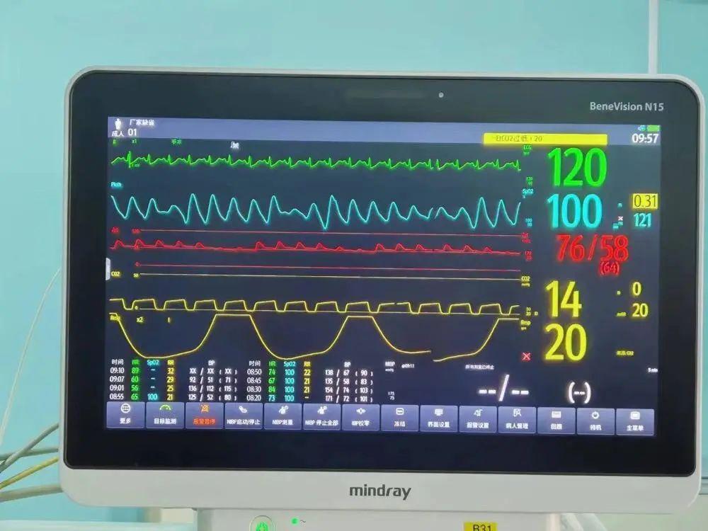 原来,在骨折手术麻醉后约30分钟,术区消毒时,王女士突发呼吸困难、口唇发绀、心率减慢,医生迅速给予阿托品及高流量吸氧抢救,心脏恢复跳动。心率继续往下掉,王女士开始失去意识,血氧和血压无法测出,医生立即实施胸外心脏按压,多次应用血管活性药后,患者逐渐恢复自主呼吸。