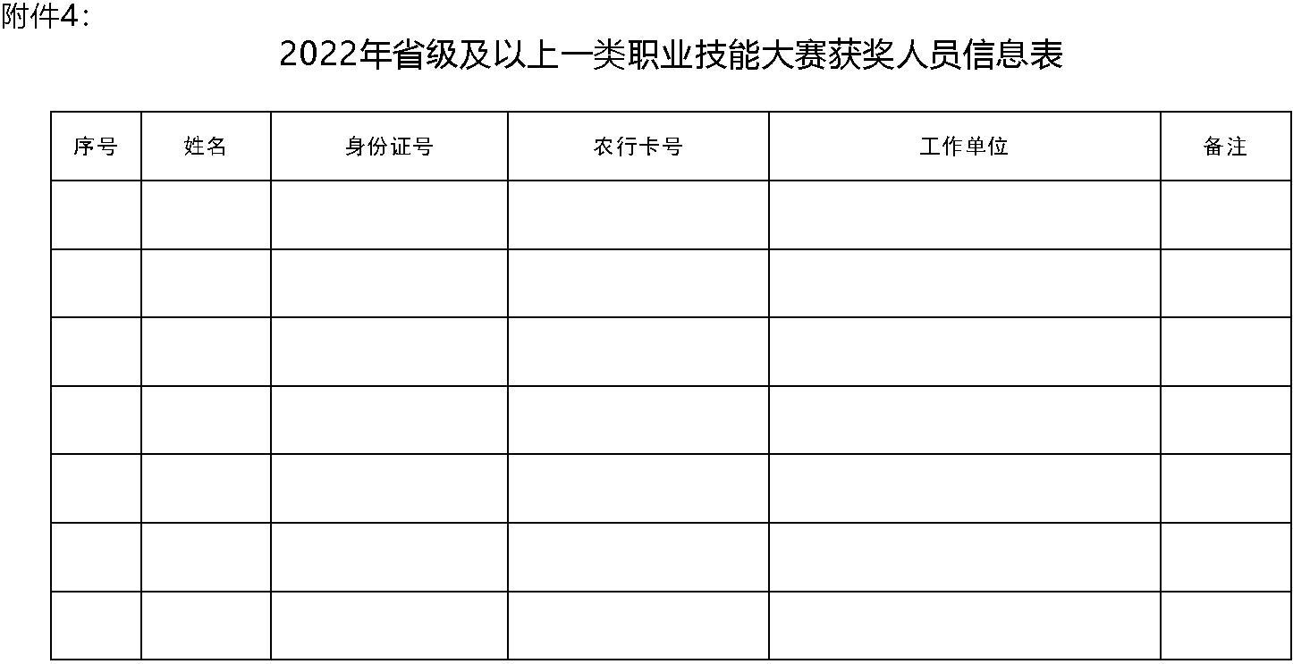 2、获得省级一类职业技能竞赛前三名、国家级一类职业技能竞赛前五名的人员,还需提供大赛表扬通报(成绩公布文件)扫描件,以及2022年市级以上一类职业技能大赛获奖人员信息表,经市人社局核准后,按程序兑现奖励政策。