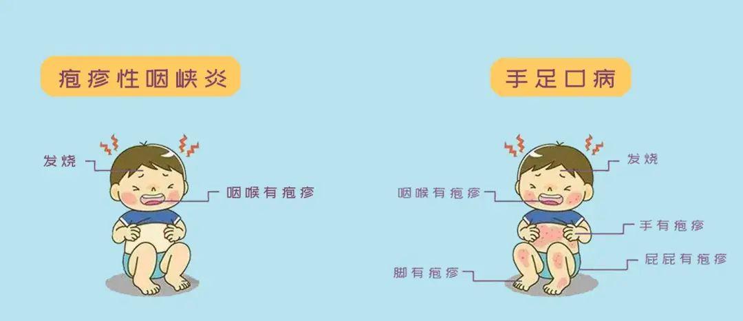 还需注意的是:6 月也需防范手足口病,它和疱疹性咽峡炎是“表兄弟”,患病后,也会在口腔内长疱疹。不过,对付这 2 种病,日常防护措施都一样,家长们都记住啦~