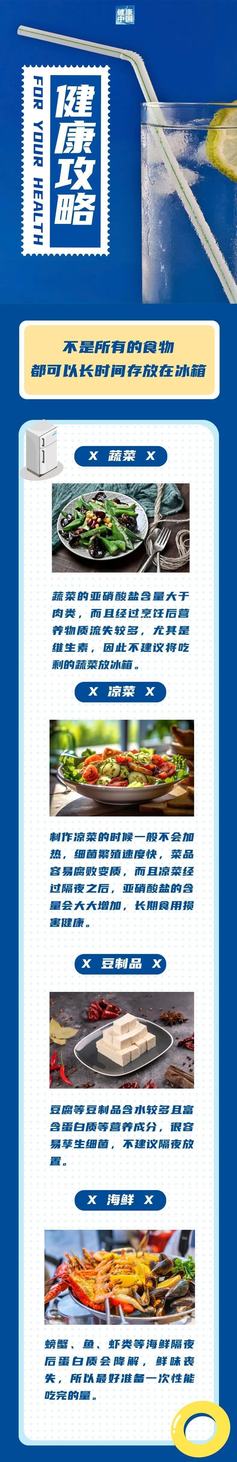 冰箱里不仅存储了新鲜的蔬菜、水果和肉制品,也放置了剩菜剩饭。冰箱不是“保险箱”,附着在食物上的细菌并没有死去,而是缓慢生长,存放的时间越长,滋生的细菌越多,最终危害人们的健康。
