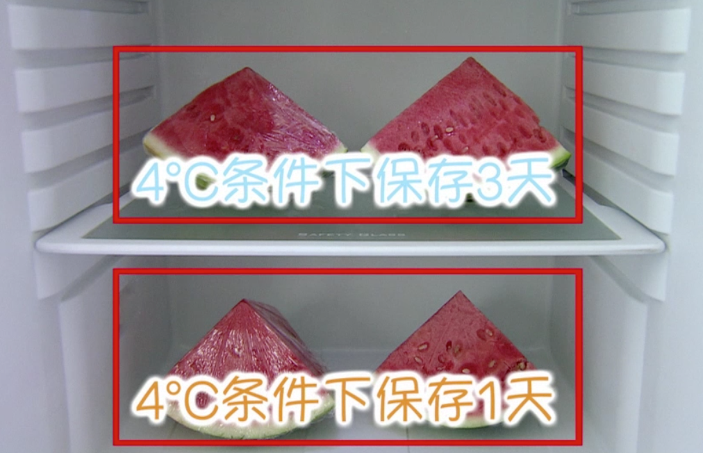 ② 放在冰箱冷藏室,包了保鲜膜的西瓜远远好于不包保鲜膜的西瓜;