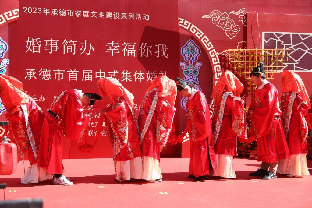 8月22日,承德市举办“婚事简办幸福你我”首届中式集体婚礼。河北省民政厅供图
