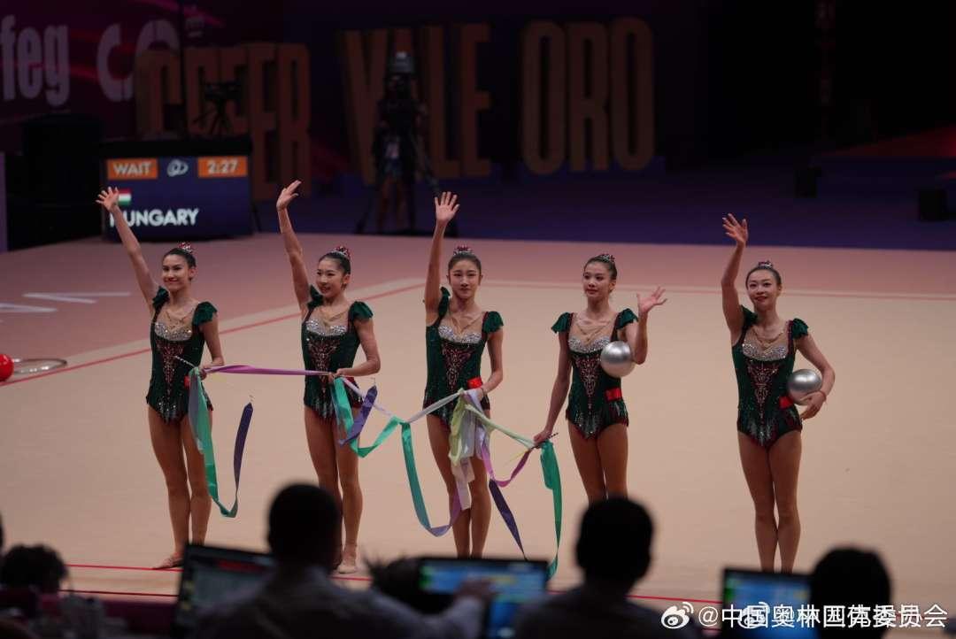 北京时间8月26日,艺术体操世锦赛结束集体全能决赛的争夺。由郭崎琪、郝婷、黄张嘉洋、王澜静、蒲彦竹、丁欣怡组成的中国队5圈拿到36.900分,3带2球得到33.150分,以总分70.050分获得银牌,创造历史。