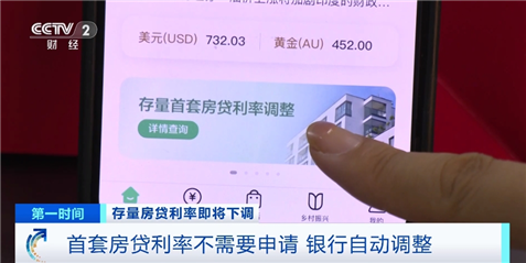 总台央视记者 孙艳:目前多家银行已经在手机银行上线了“存量房贷利率调整”的功能,并且提供查询服务,方便办理流程。例如,打开工商银行手机银行App,在首页就能看到“存量房贷利率调整”模块,点击进入,可以看到个人住房贷款,这里会显示这笔贷款是不是符合条件的首套贷款。如果是符合条件的首套贷款,不需要个人去向银行申请下调利率,银行会在9月25日主动批量调整,并把结果通过短信方式通知我,新的利率水平在当天就会生效。