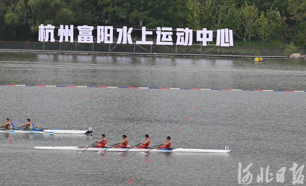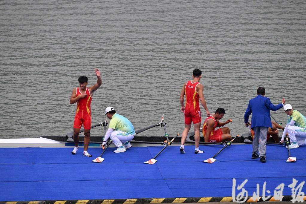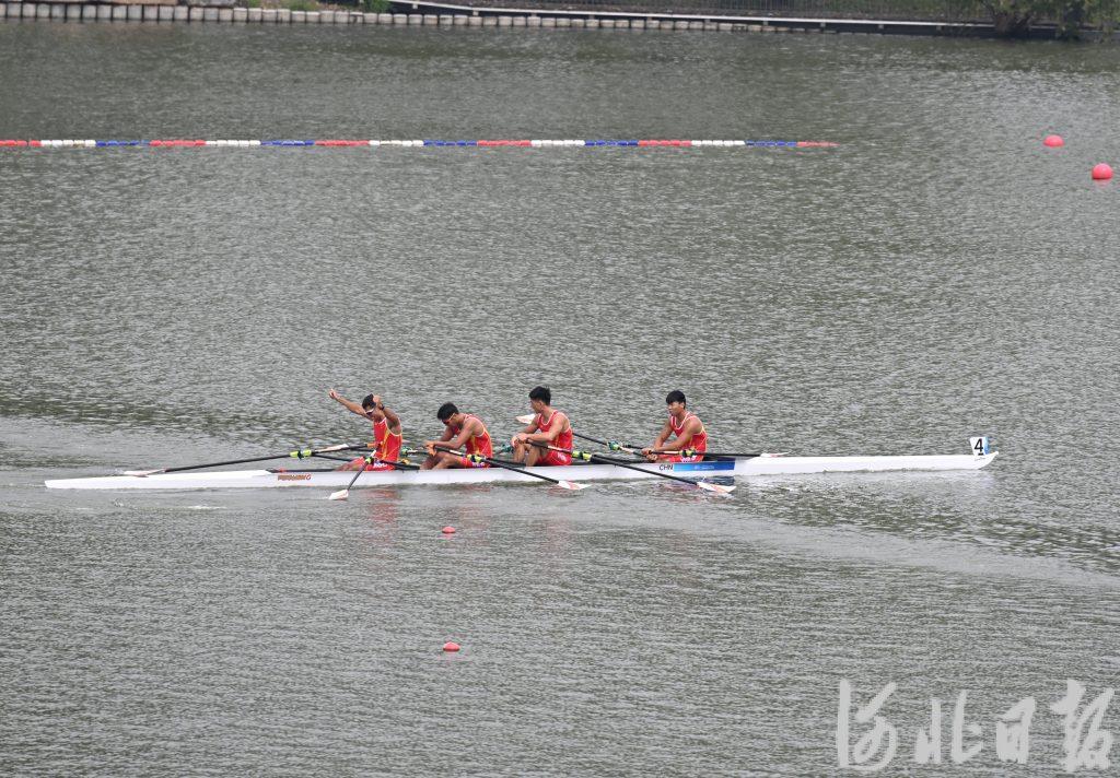 赛艇男子四人双桨,河北运动员韩崴等中国小伙夺金。河北日报、河北日报客户端记者耿辉摄