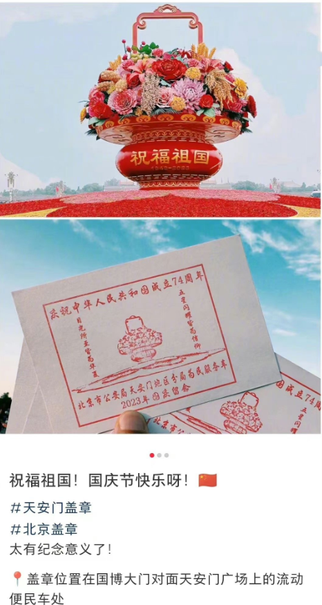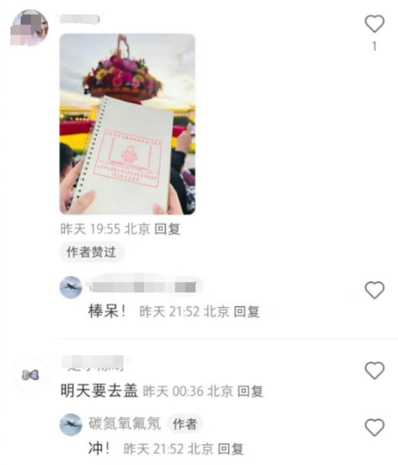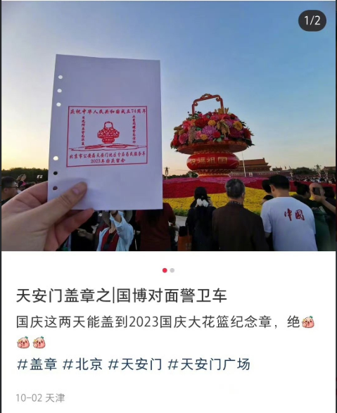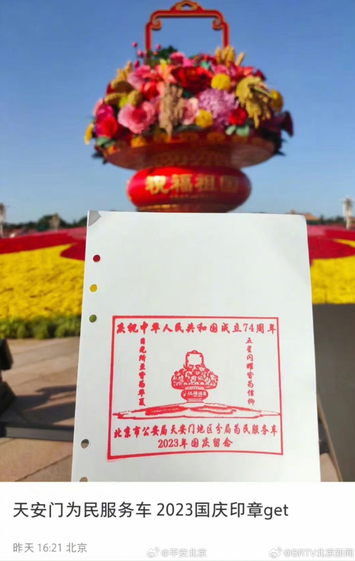 有游客在社交平台晒出在广场“为民服务车”处收集的印章,引来不少网友的围观,直呼羡慕!