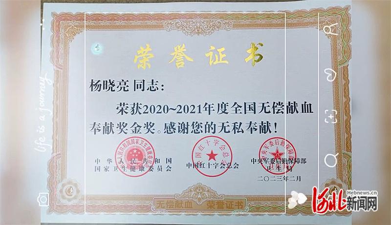 39岁的杨晓亮家住河北遵化,从事汽车维修工作,多年坚持无偿献血,曾获“2020~2021年度全国无偿献血奉献奖金奖”。杨晓亮曾在网络上了解到,血液病的治疗需要造血干细胞,由此便在心里种下了一颗捐“髓”的种子。2015年8月,他在献血过程中留下了自己的血样,成为中华骨髓库的一名志愿者。“当时也是出于一份爱心吧,想把这份爱心传递下去”杨晓亮回忆道,虽然一等就是8年,但杨晓亮捐“髓”的信念从未有过动摇。