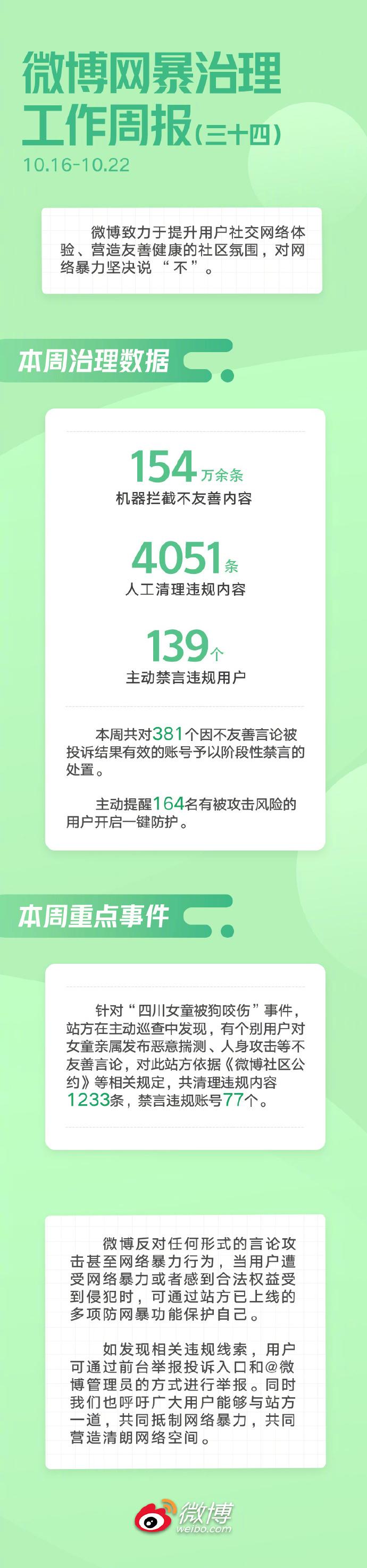 微博:就“四川女童被狗咬”不妥言论禁言违规账号77个