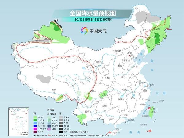 10月31日,江南北部降雨将结束,而广东、广西雨势将增强。预计西藏东部、川西高原中部等地的部分地区有小雪或雨夹雪;贵州西南部、云南东南部、广东西部、广西等地有中雨,其中,云南东南部、广西东南部、广东西南部等地的部分地区有大雨。