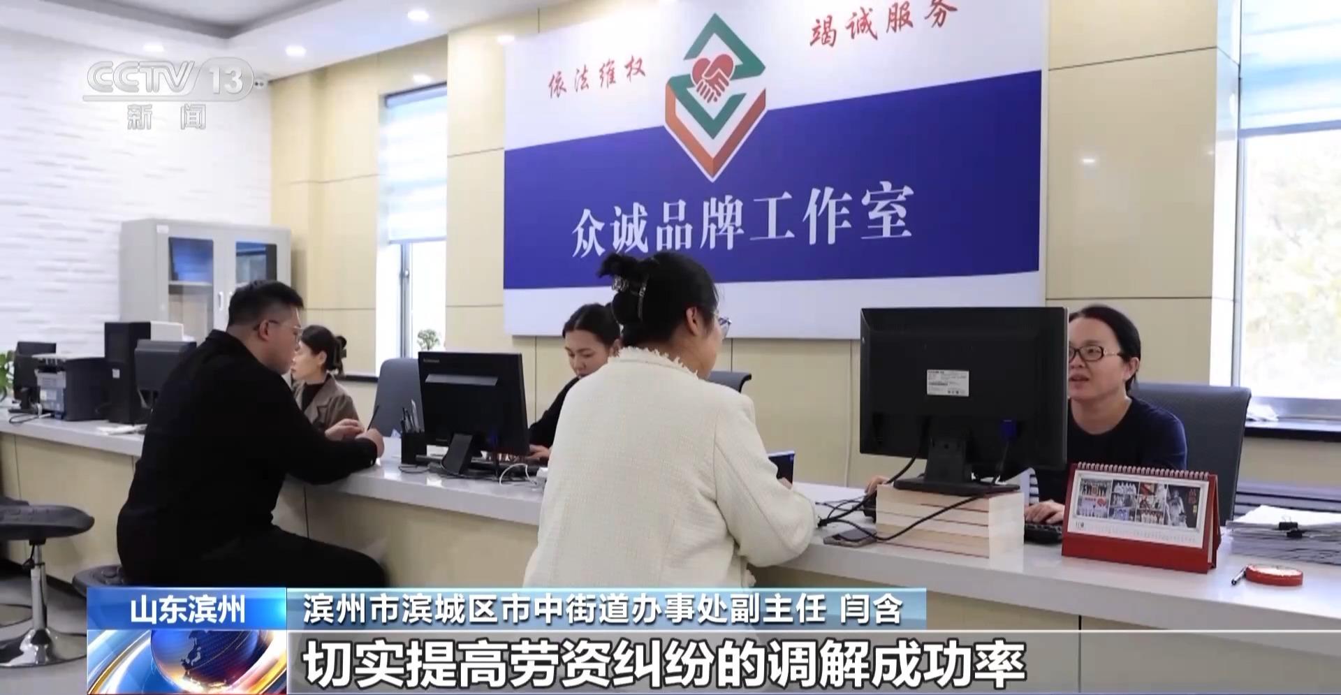 滨州市滨城区市中街道办事处副主任 闫含:我们充分利用各类调解渠道,切实提高劳资纠纷的调解成功率。同时,街道还延长调解服务链条,跟进当事人的就业需求,完成调解和就业的全流程服务闭环,真正实现了案结、事了、人和。