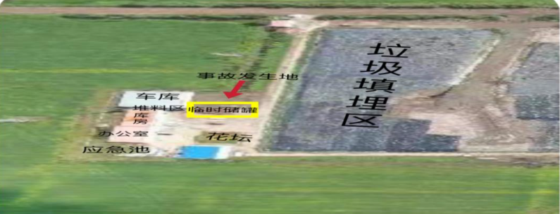 位于垃圾处理站厂区堆料区旁边临时储罐处。