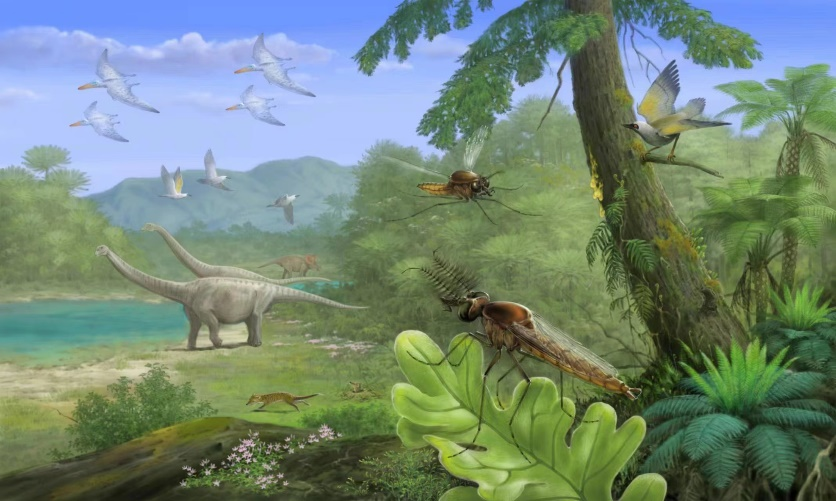 △早白垩世黎巴嫩琥珀蚊子化石的生态复原图