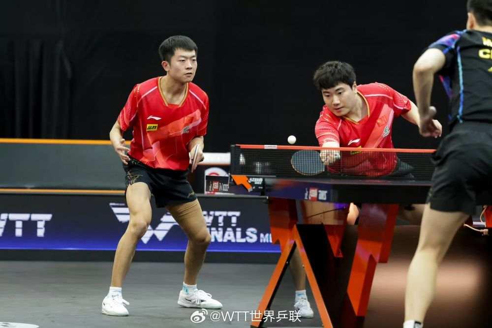 WTT球星挑战赛男双决赛,梁靖崑/袁励岑(红)在比赛中。图源WTT官方微博