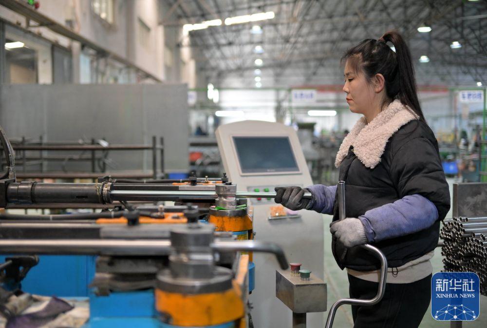 ↑1月24日,工人在河北省唐山市芦台经济开发区一自行车配件企业的生产车间工作。