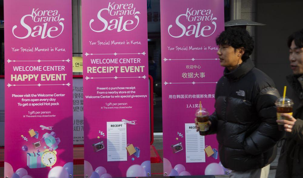 1月16日,游客在韩国首尔的明洞商圈逛街。新华社发(全休相摄)