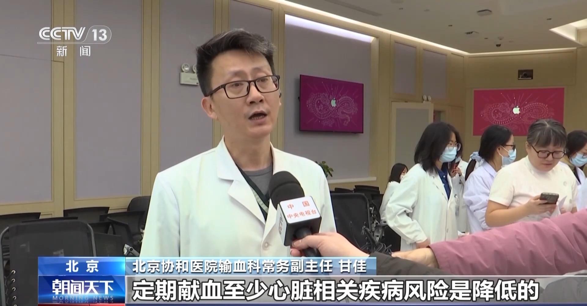 北京协和医院输血科常务副主任 甘佳:我献得还不算多,我只献了15次。对于大多数健康成人来讲,献血200或者400毫升是安全的,对身体是没有影响的。我们现有的研究表明,定期献血至少心脏相关疾病的风险是降低的。