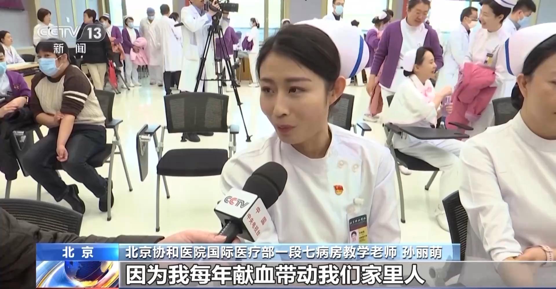 北京协和医院国际医疗部一段七病房教学老师 孙丽萌:将爱心传递,然后感染周边人,因为我每年献血带动我们家里人,我妹妹还有我爱人,每年都跟我去献血车献血。