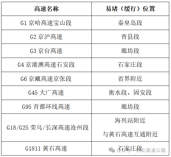 我省高速公路易拥堵或者缓行的路段如下: