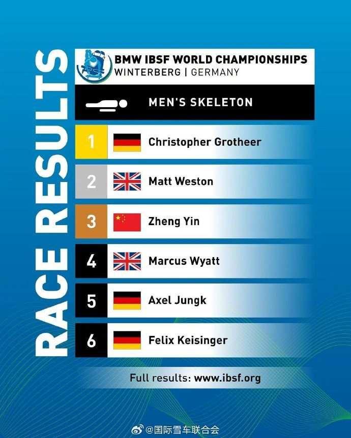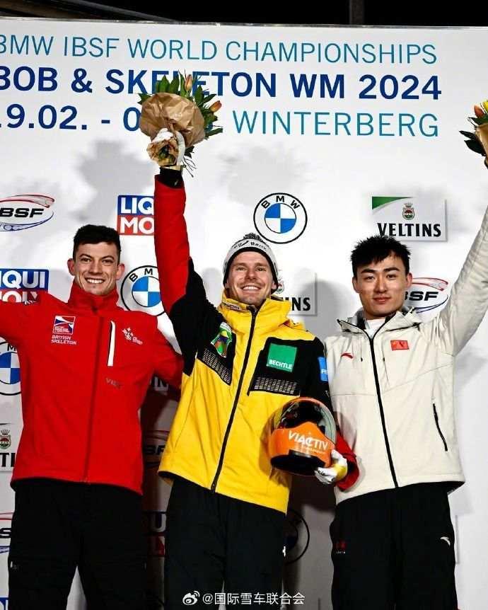 当地时间23日,2023—2024赛季钢架雪车世锦赛在德国温特贝格进行了男子单人项目比赛。经过四轮的激烈角逐,中国选手殷正以四轮3分45秒92的总成绩获得铜牌,创下了个人世锦赛的最好成绩,也成为首位站上世锦赛领奖台的中国运动员,实现了历史性突破。