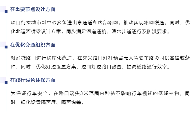 新增一条城市副中心东部地区南北向骨干通道,串联厂通路、通燕高速、京哈高速等多条主要进出京通道,进一步完善城市副中心与北三县一体化路网结构,提升路网运行效率。
