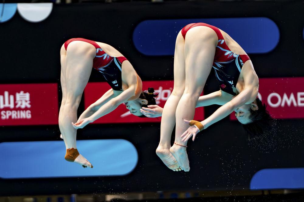 在当日进行的女子双人3米板决赛中,中国队昌雅妮携手陈艺文以329.40分夺得冠军,美国和澳大利亚组合分获二、三名。男子双人10米台项目,中国队练俊杰/杨昊以457.23分获得金牌,墨西哥和英国组合分获银牌和铜牌。男子3米板项目,中国队王宗源以549.50分名列第一,墨西哥和英国选手分获二、三名,另一位中国选手郑九源位列第四。女子10米台项目,中国名将陈芋汐最终以415.35分夺冠,全红婵紧随其后,以411.45分的成绩获得亚军。
