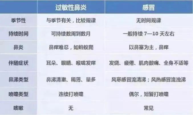 过敏性鼻炎一般只在特定季节或接触过敏物质后突然发作,比较有规律;感冒则无时间规律。