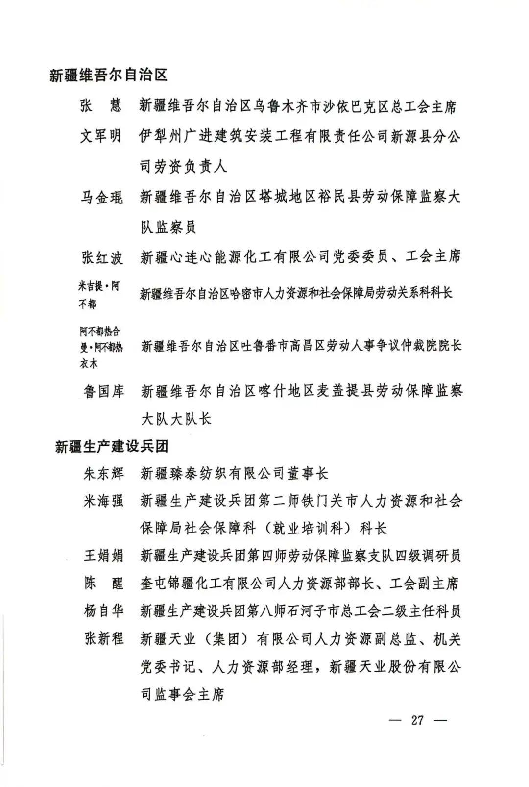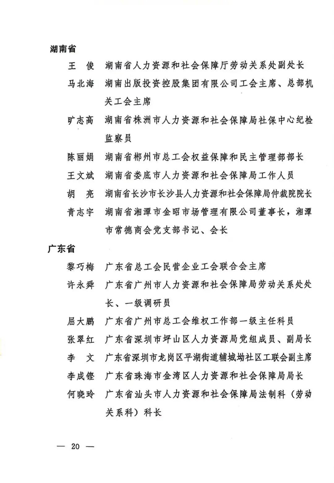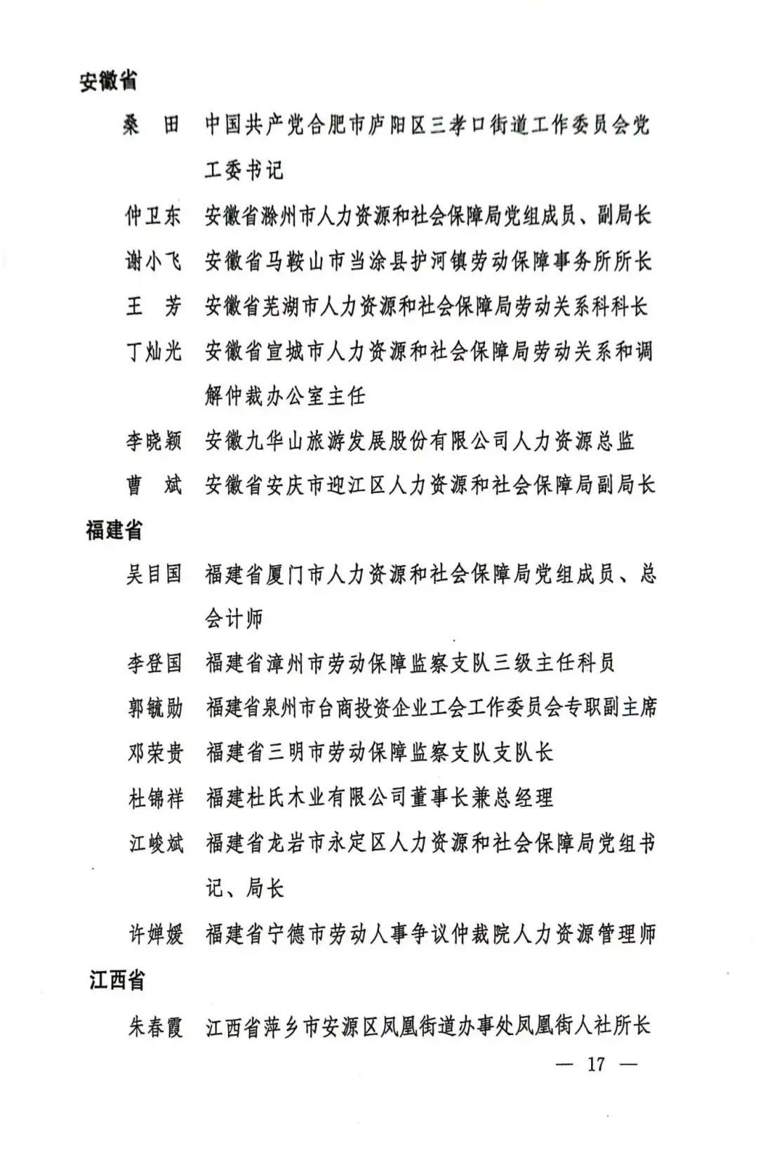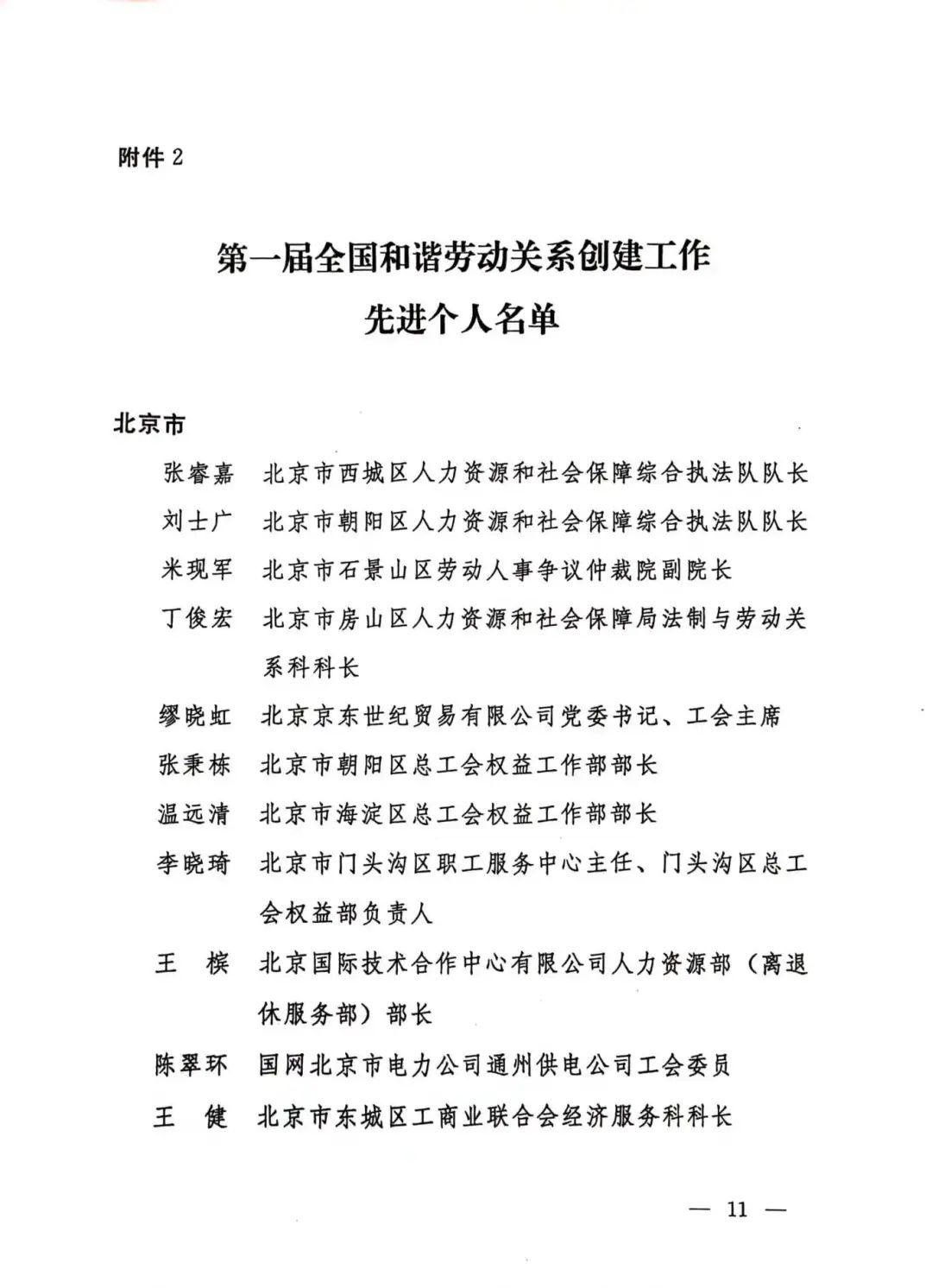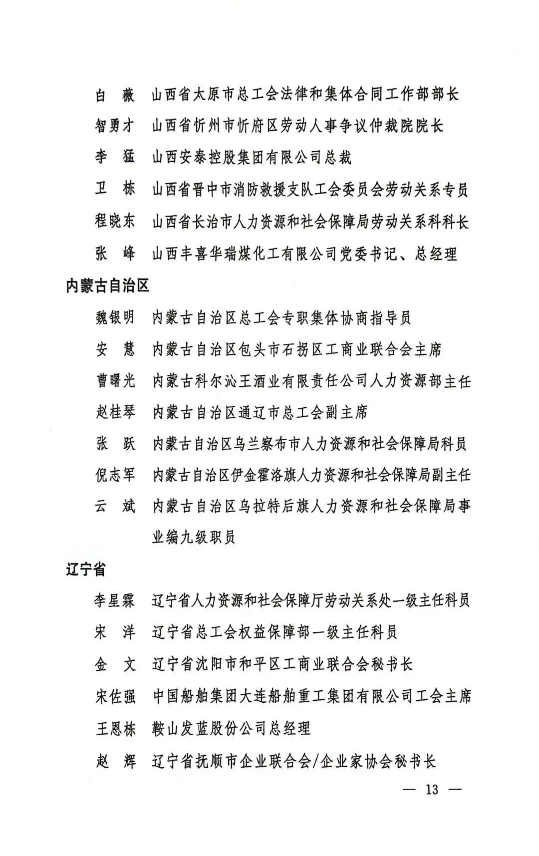 第一届全国和谐劳动关系创建工作先进个人名单