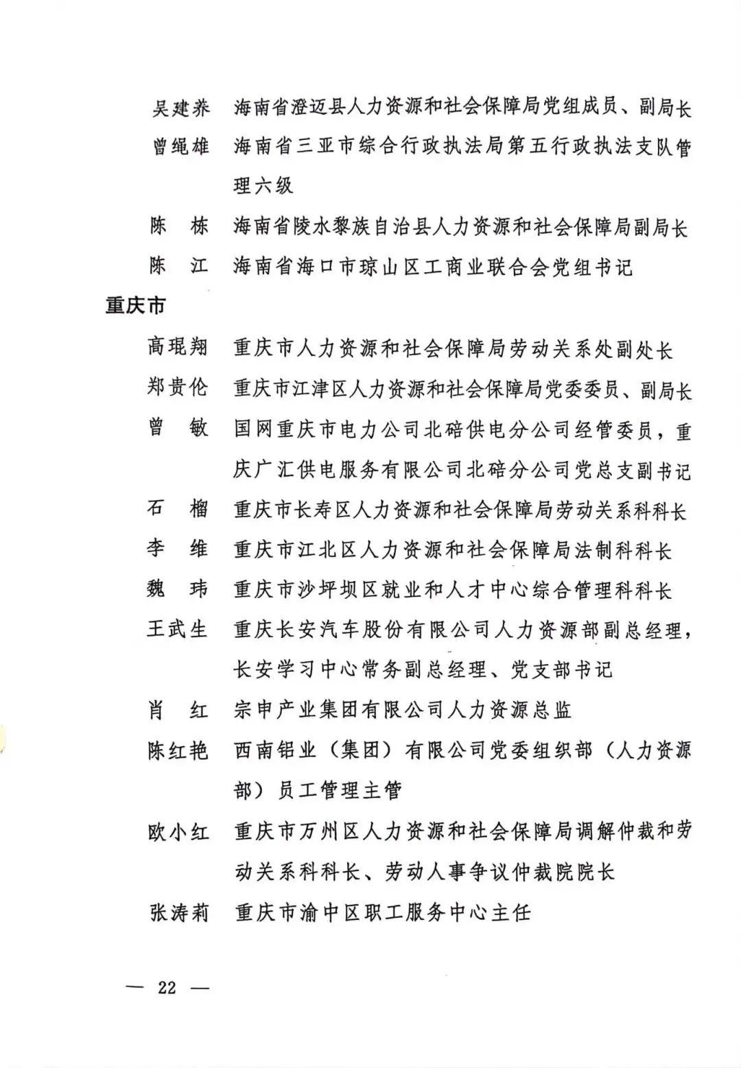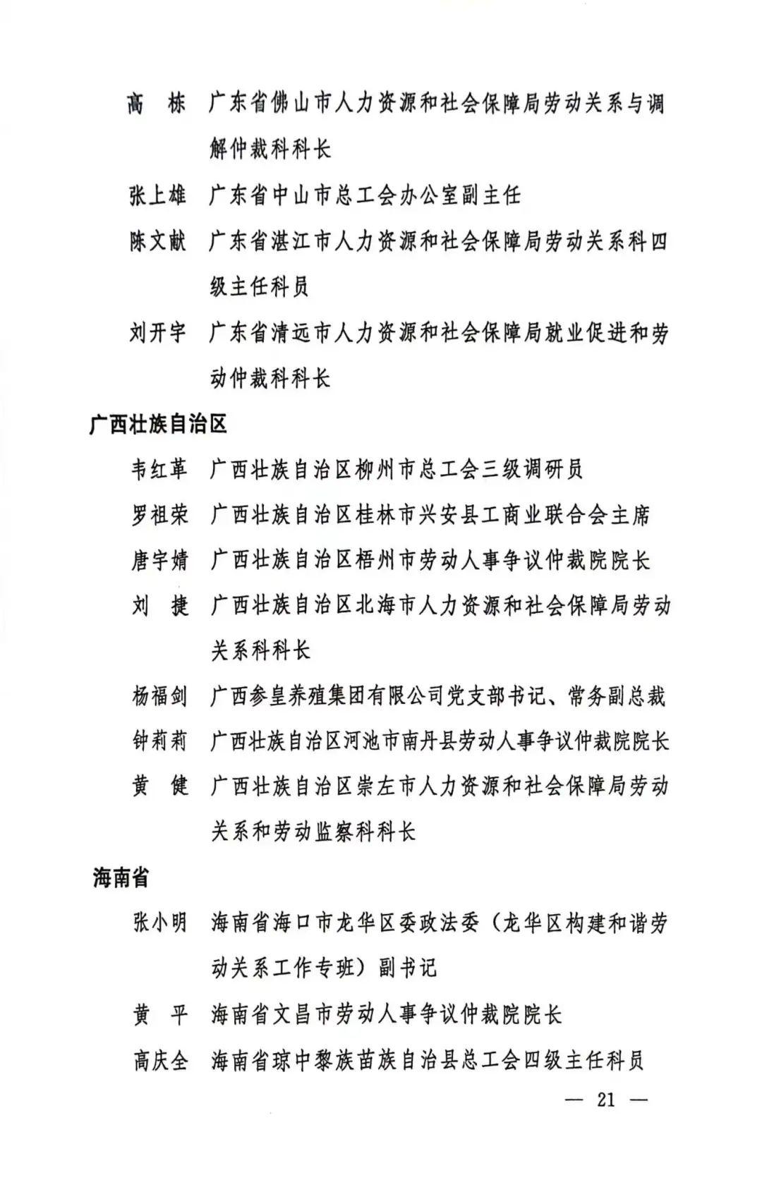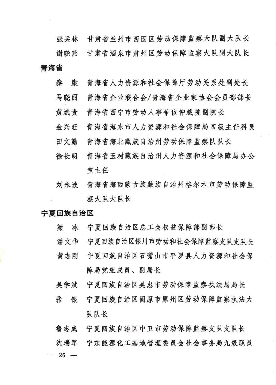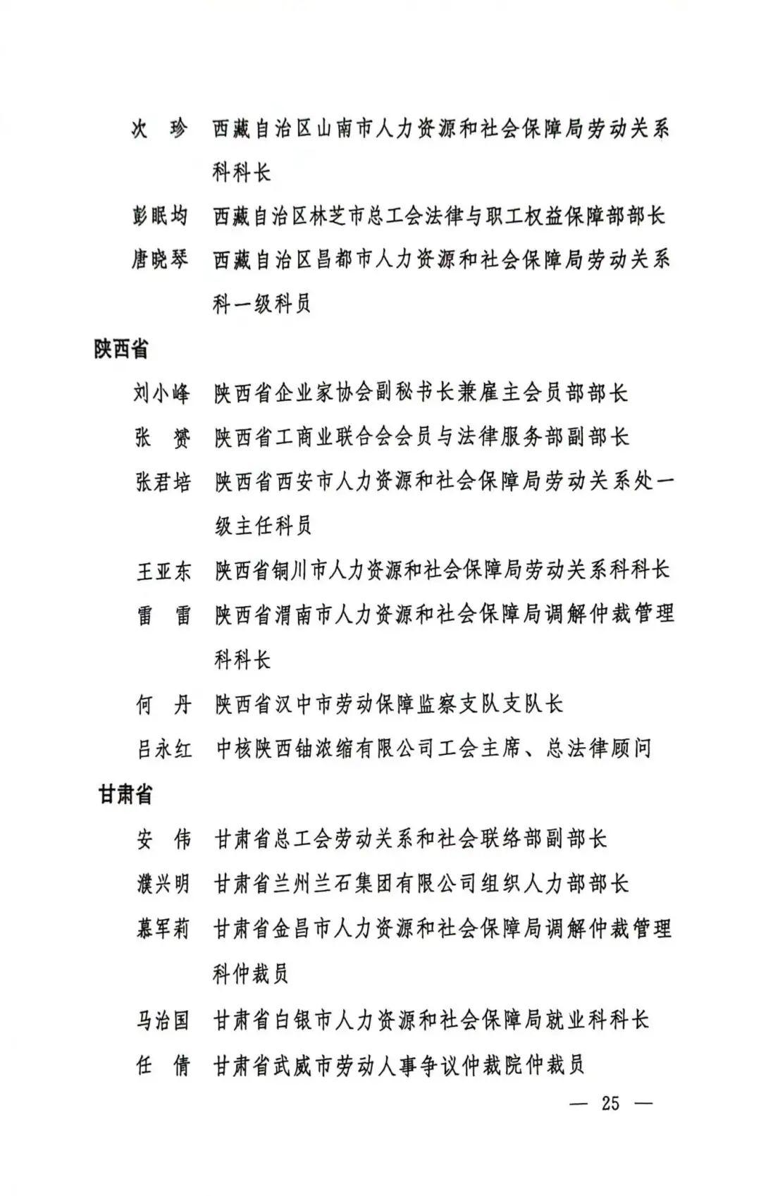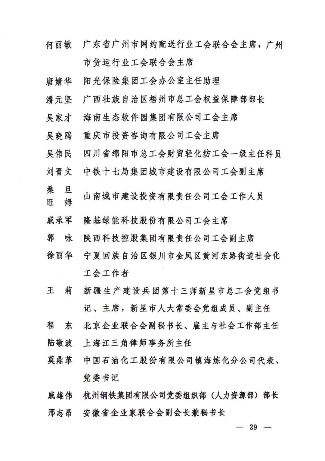 第一届全国和谐劳动关系创建工作先进个人名单