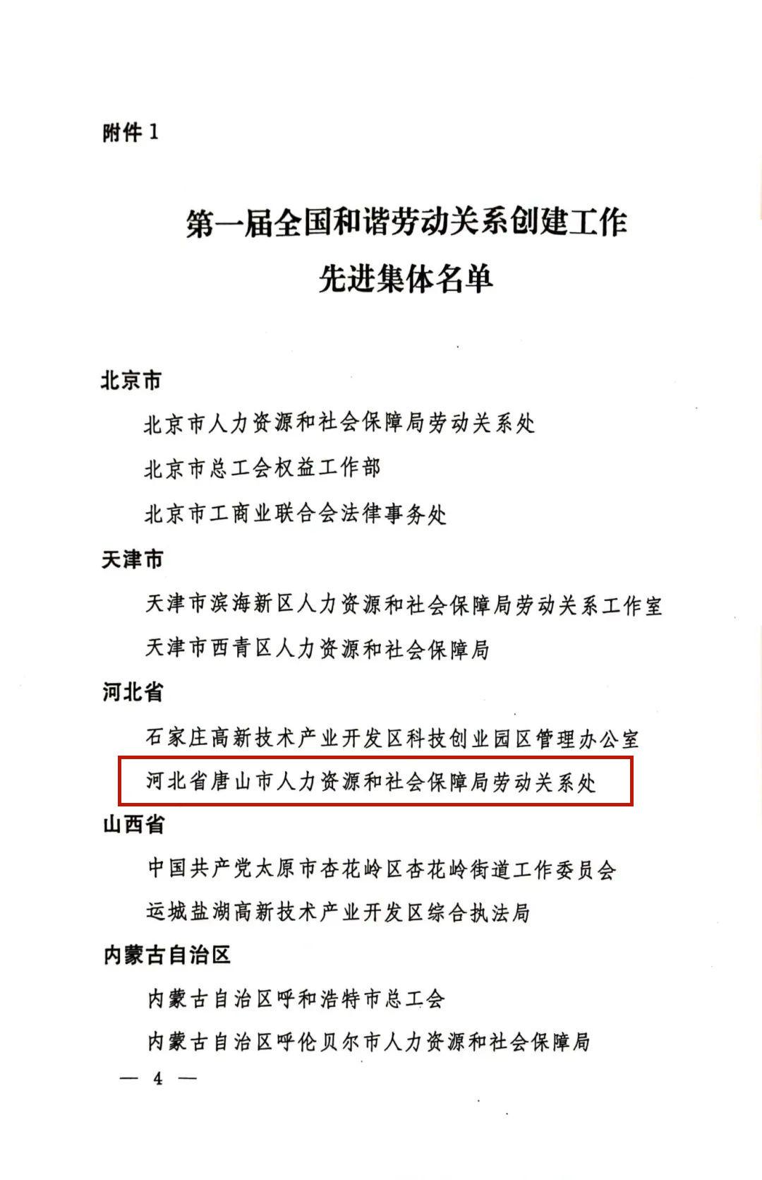 第一届全国和谐劳动关系创建工作先进集体名单